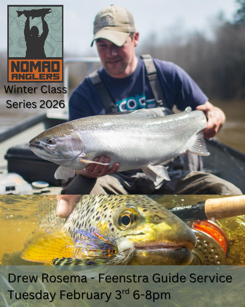Join us at our Grand Rapids shop on Thursday February 3rd for a night of tying flies with Drew Rosema. Drew is a guide for Feenstra Guide Service who spends nearly every day on the Muskegon River.