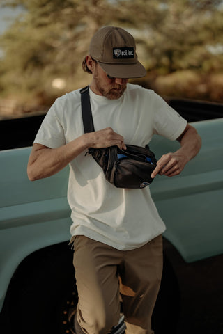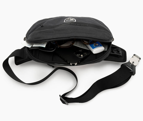 The versatile ESKAPE™ Sling Pack keeps your essentials secure with a well-organized main compartment with mesh pockets, a key clip, and a scratch-free area ideal for glasses and phones. A durable, nylon-reinforced canvas exterior, wax-coated for weather protection, and water-resistant zippers keep your items dry.